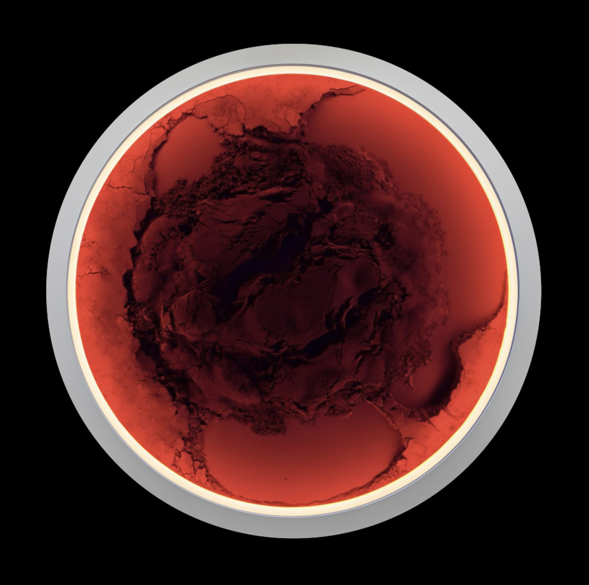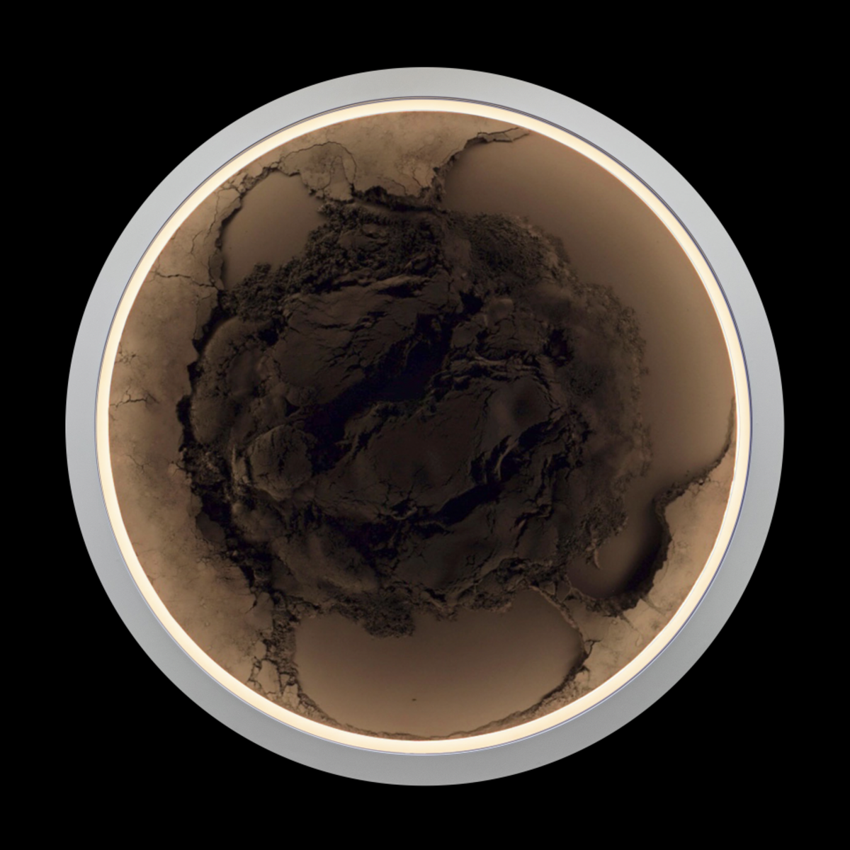 Medium: Sand, epoxy resin, plaster, paint, MDF, enamel paint, LEDs (app-controlled via SmartLife; no remote controller)